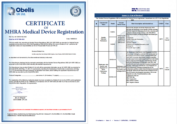 近日,好博体育生物自主研发的猴痘病毒核酸检测试剂盒(PCR-荧光探针法)通过英国MHRA认证,该产品获得英国MHRA注册后,可在英国和认可英国MHRA注册的国家或地区销售,这是继欧盟CE之后斩获的又一权威认证。