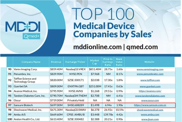 近日,医疗器械行业权威网站Medical Device+Diagnostic Industry(MD+DI)发布了2023年全球医疗器械企业TOP100榜单。好博体育生物连续两年上榜全球百强,也是此次榜单唯二主营业务是体外诊断的中国企业。