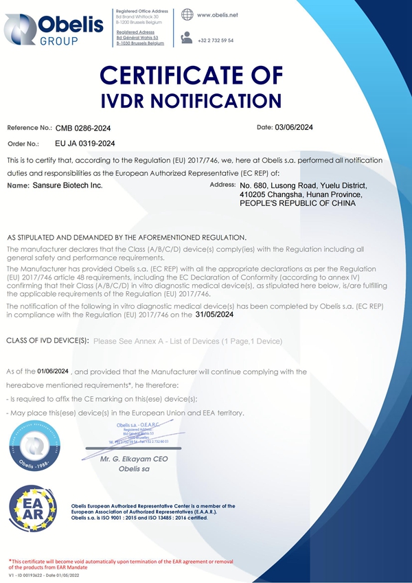 此次结核核酸检测试剂获欧盟CE认证,是好博体育生物国际化战略的重要成果之一,标志着公司结核产品在技术和质量上均达到国际先进水平,将增强客户和合作伙伴对公司产品的信任,为全球客户提供更多、更优质的选择。