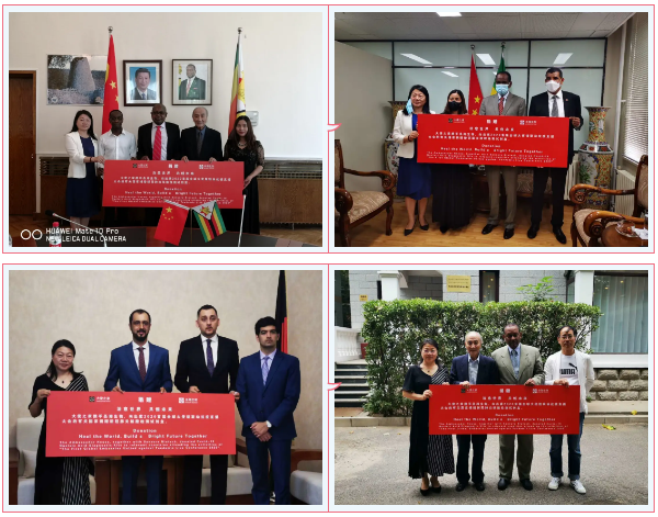 在6月12日举办的近20个国家驻华使节参与的首届全球大使馆联动抗疫直播大会上,好博体育生物宣布捐赠的10万人份新冠病毒核酸检测试剂各使馆捐赠接收现场。